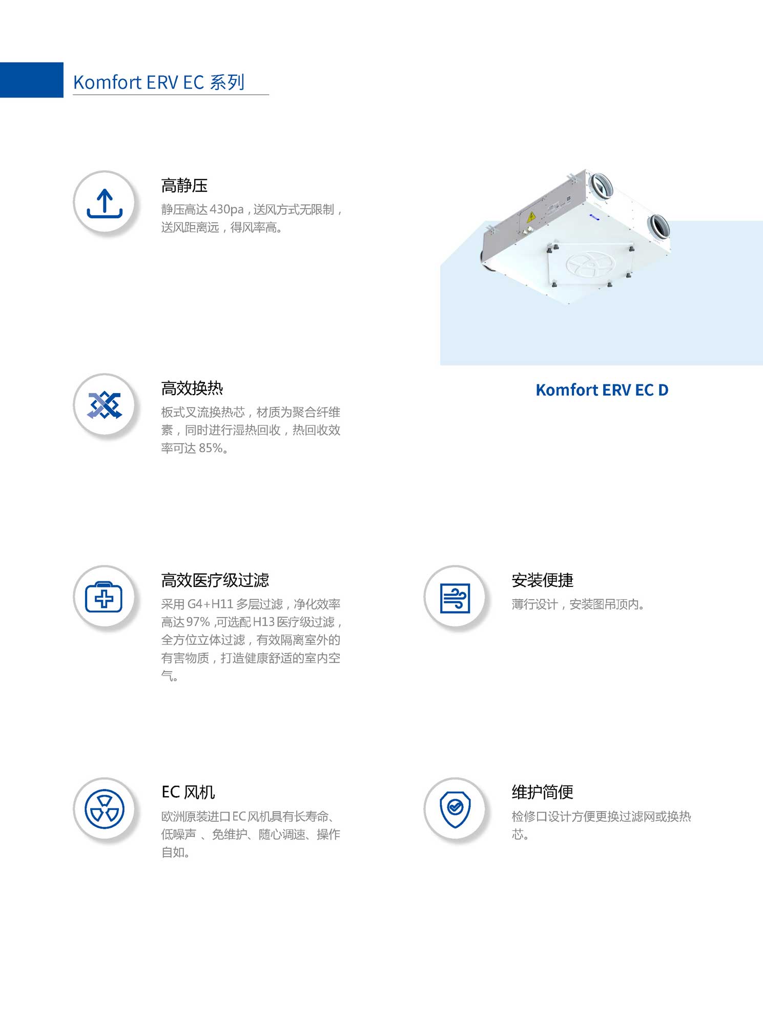● 高靜壓,靜壓高達(dá)430pa,保證末端新風(fēng)量