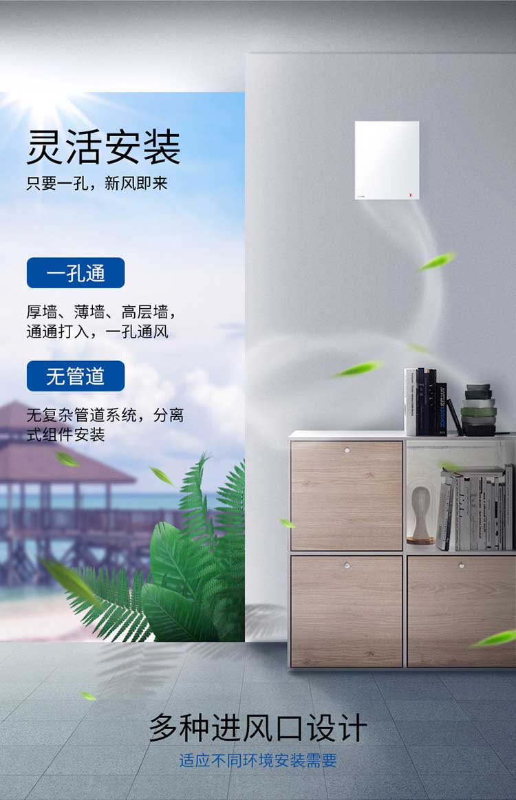 ●靈活安裝,只要一孔,新風即來,裝修好的老房子輕松安裝