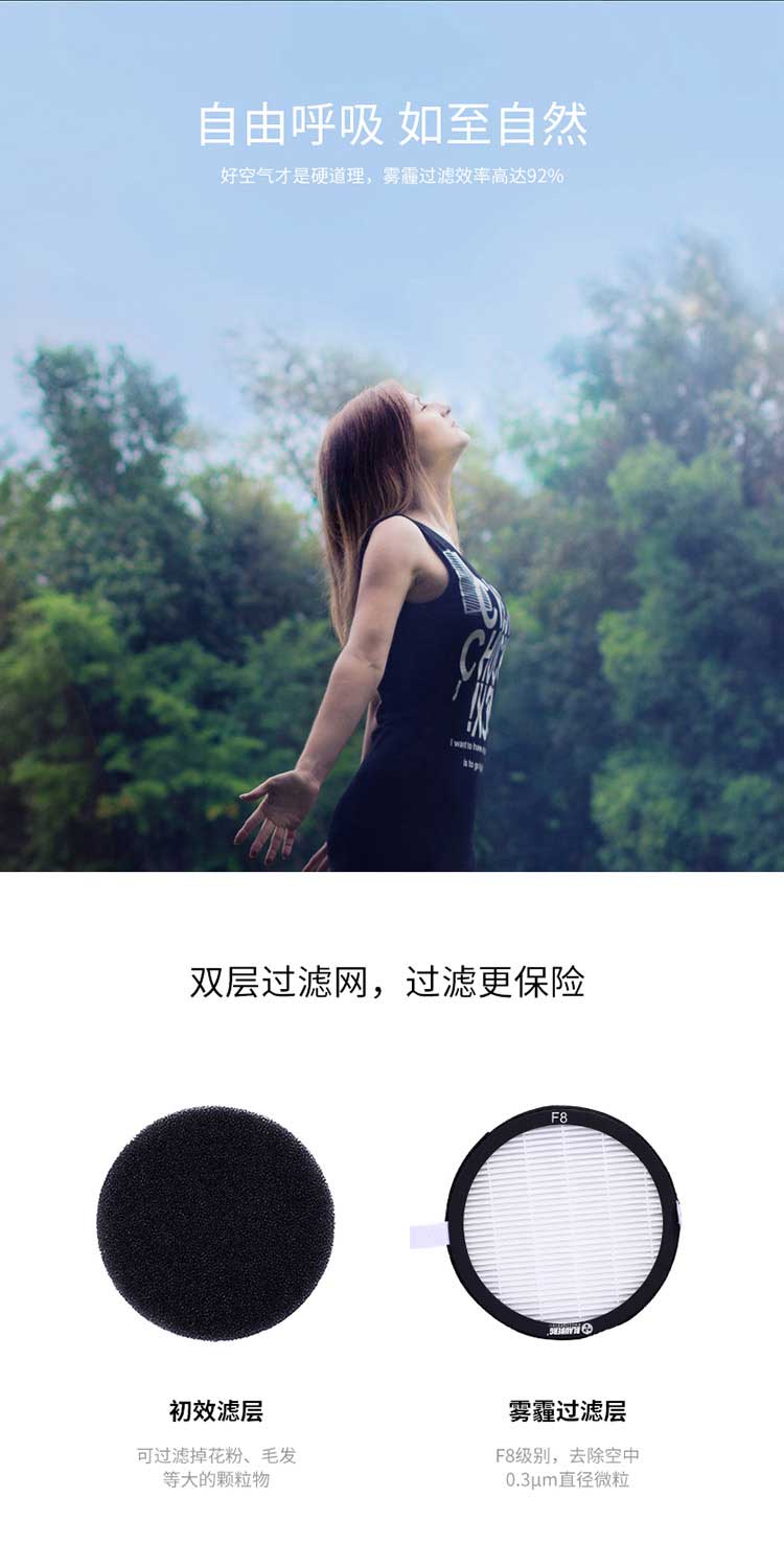 ●污染物一網打盡,霧霾、汽車尾氣、工業廢氣、臭氧、甲醛、二手煙、花粉全線攔截